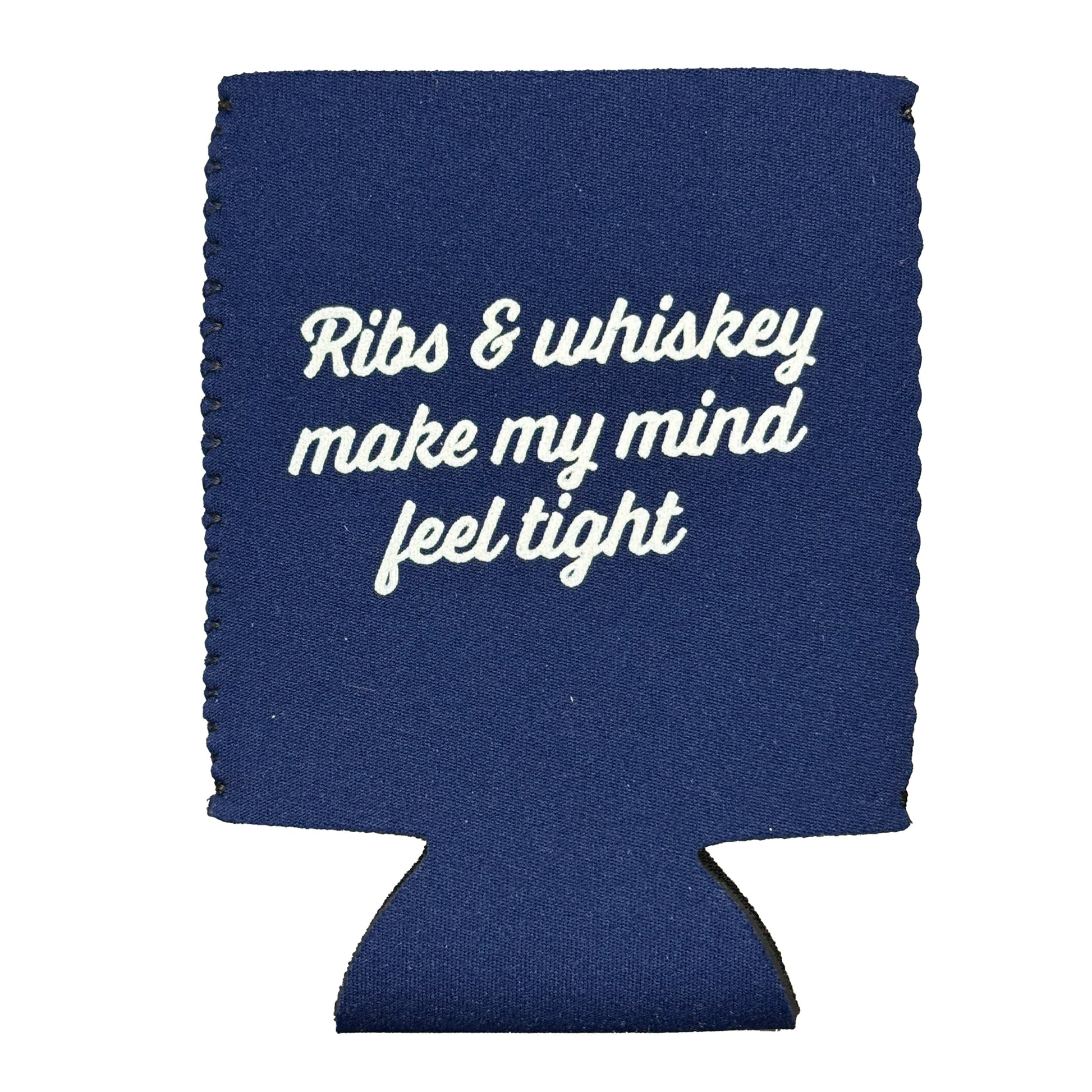 Keep your drink cool and your spirits high with the Sugar Magnolia Blue Koozie. Featuring the cheeky graphic "ribs and whiskey make my mind feel tight," this koozie is perfect for those who love a good laugh with their BBQ and bourbon. A playful way to chill your beverage and show off your fun side.